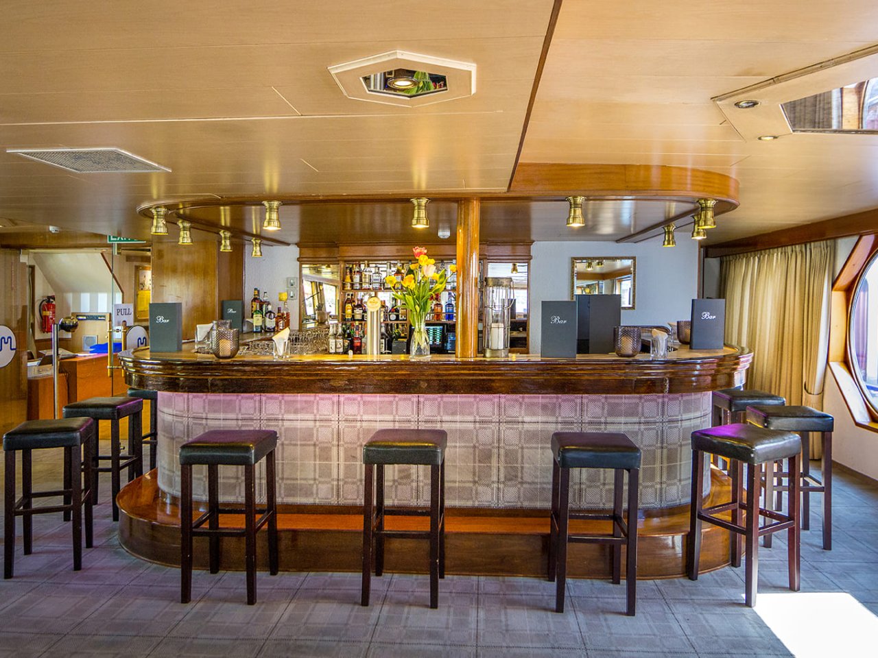 Die Kabinen auf dem Oberdeck sind mit großen, zu öffnenden Panoramafenstern ausgestattet, die viel Tageslicht und schöne Ausblicke ermöglichen. Die Kabinen auf dem Hauptdeck besitzen hohe Fenster (nicht zu öffnen) und überzeugen ebenfalls durch eine angenehme, helle Atmosphäre.